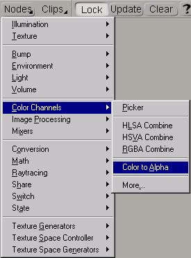 | Color2Alphas "new location" The way it appears in XSI 1.5 Nodes>Color Channels>Color2Alpha |