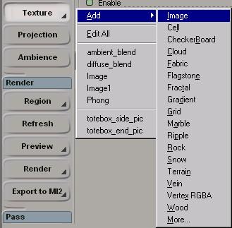 | The second, third, etc... should be assigned using (Modify>Texture>Add>Image) | ![]() |