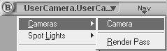 After loading the scene, change Viewport B into a camera view by choosing Cameras > Camera from the viewport dropdown menu. |