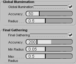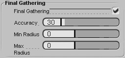 enough, adjusting the Final Gathering accuracy, turning the min/max radius