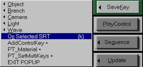 For my "move" icon I check the box for "trans - X,Y,Z - OBJ - DRG". For my rotation circle for the Y axis I check "Rotate - Y - OBJ - LCL". You should be able to figure out what to do with the rest. Now (make sure you are in Single mode) select different icons and you'll notice of Softimage|3D by it self changes the transformation tool.... and with the right axis in mind!!! wow! amazing :-). Making a new hotkey Last thing we now need is a new hotkey similar to the one you have in XSI.... eh... hmm... what you miss in Softimage|3D will apear in XSI, but what you miss in XSI you will find in Softimage|3D.... hehehe... Oh well, we are going to make the "K" button our keyframe button. In the motion module you'll find something called: