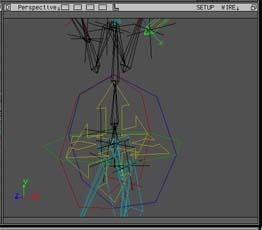 Now for the spine. If you have studied my other tutorial you know that I use something I call a "ass bone". This bone was developed for the purpose of hot "catwalk" scenes and "jiggle the ass" scenes. It gives you much more control over how the hip moves around. So the center of the body is in the waist. That is where the root is. . The root has a position constraint to the yellow "move" icon. And now for the rotations. Each spine bone has the same kind of expression as the foot bone. The difference now is that with one rotation you bend the hole back. The "ass bone" has a wirecube that controls the rotation of the bone.