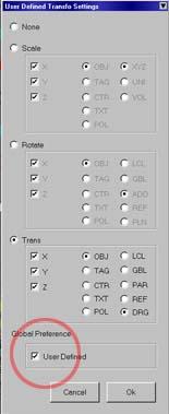 Transform selections Now for the best part. This is where XSI and "old" Softimage|3D make a difference. One of the golden functions that never made the transition over to XSI. And so far the setup isn't all that much different from other setups. Select one of the "move" icons. Go to "Info - Transformation Setup..."