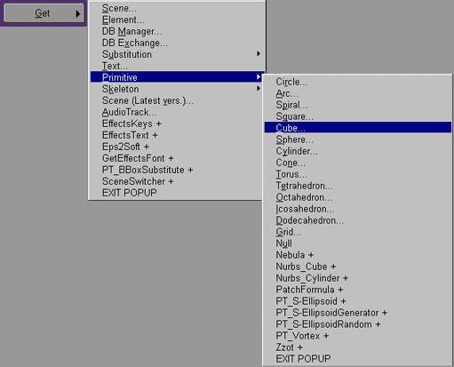 1. Activate modeling relation mode by chosing Model>Preferences>Create Modeling Relation. Then create a cube with Get>Pritive>Cube