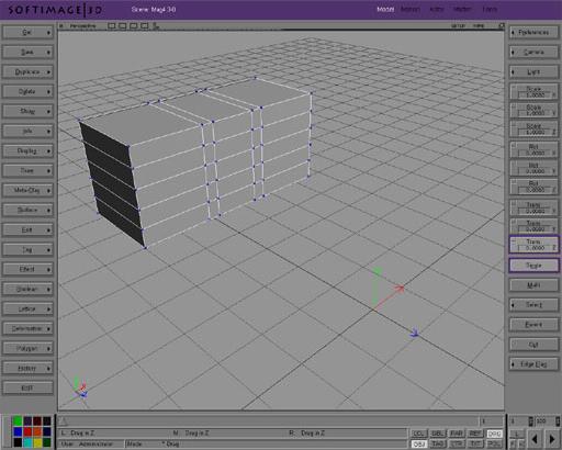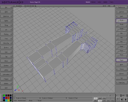 them 2 times. (Try to get the positions of your points to match the picture) 3b- Translate your object in the Z axis and freeze it. (Model>effect>freeze>Transformations) This causes the the center to move to the middle of world space. |
