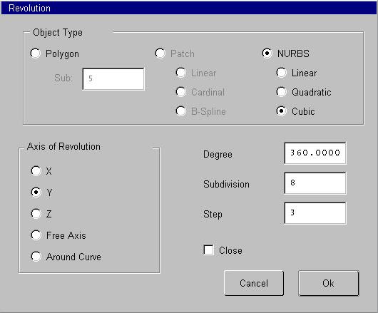 8. With your profile selected, choose Model>Surface>Revolution. |