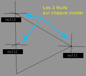 Contraindre en position 1 Null sur chaque cluster (MOTION>Constraint/Object to Cluster)