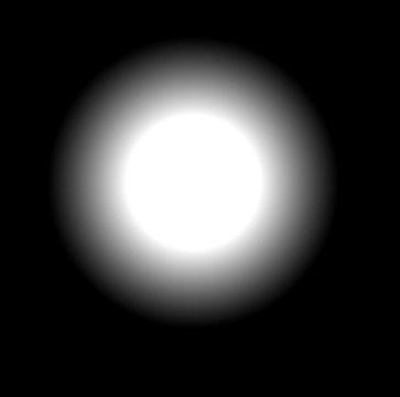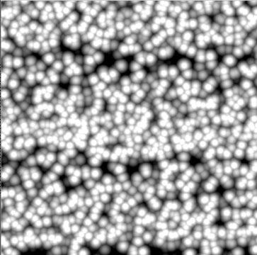 This example scene uses two image maps, a checkerboard picture file (test_check) and a cell-like image (test_cell). Test_Cell has an alpha channel that fades out in a circular nature (below).
