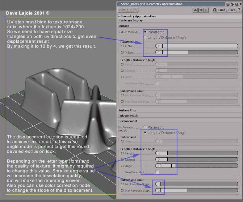 C) Displacement ÅÇ¿¡¼, ¸ðµå¸¦ LDA ( Length/Distance/Angle )·Î ¹Ù²Û´Ù. ¶ó¿îµùÇü ¾ÐÃâÀ» ¾ò±âÀ§Çؼ, ¿©±â¼´Â angleÀ» »ç¿ëÇÏ¿´´Âµ¥, tesselationÀº ¼ÆäÀ̽º ¾Þ±Û º¯È¿¡ ÃÐÁ¡À» ¸ÂÃß°Ô µÇ±â ¶§¹®ÀÌ´Ù. ±×°ÍÀÌ tesselationÀÌ ÀϾ Çʿ䰡 ÀÖ´Â °÷ÀÌ´Ù. Angle °ªÀº ½ÇÁ¦·ÎÀº threshold °ªÀ̹ǷÎ, 10µµÀÇ °¢µµ Â÷À̰¡ ÀÖ´Â ¸ðµç Æú¸®°ïÀº criteria¿¡ ¸ÂÀ» ¶§±îÁö Âɰ³¾îÁö°í ´Ù½Ã tesselate µÇ°Ô µÈ´Ù.