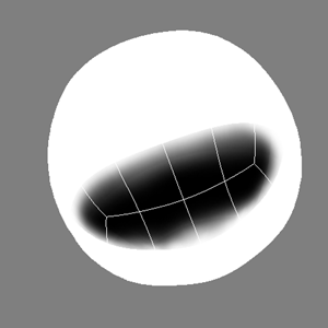 Tag the problem polys (below) and then re-project them using the tex editor projection tools, until you get something like what I have below. The problem exists on both sides of the peach, which is why there are two crescents in the editor. Next, position the Projections so that they cover, and will therefore project, the desired area of the Texture Map. Since peaches are somewhat asymmetrical, I made sure to choose very different areas of the texture.