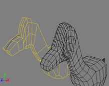 you can momently hide the "Subdivided Mysterious Animal" as we will now add the wings to the low poly model. select these 2